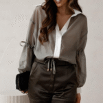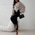 Klasyka z nowoczesnym pazurem. Koszula „Midnight Mood” to idealne połączenie elegancji i nonszalancji. Wykonana z lekkiego, miękko układającego się materiału, zachwyca minimalistycznym fasonem i wyraźnym detalem – szerokimi, bufiastymi rękawami zakończonymi mankietami z guzikami.