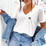 T-shirt basic z dekoltem V